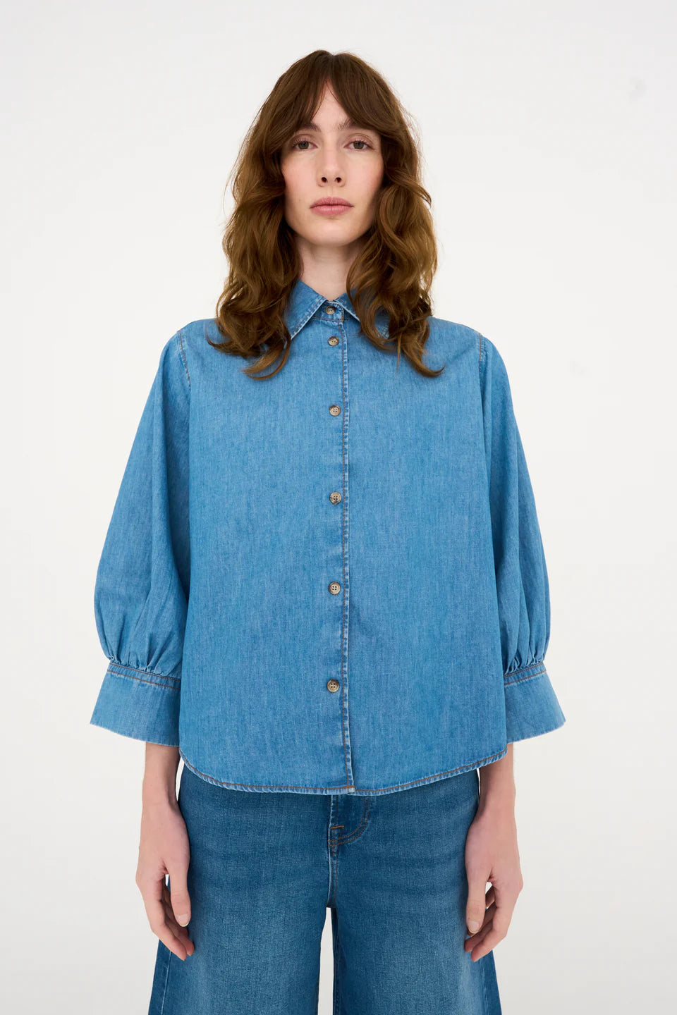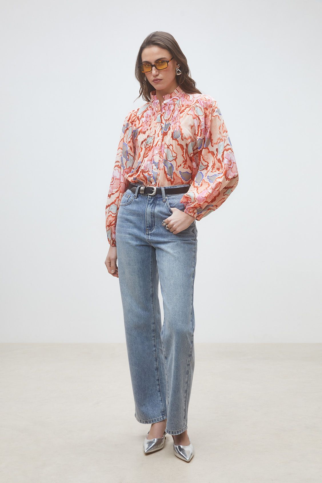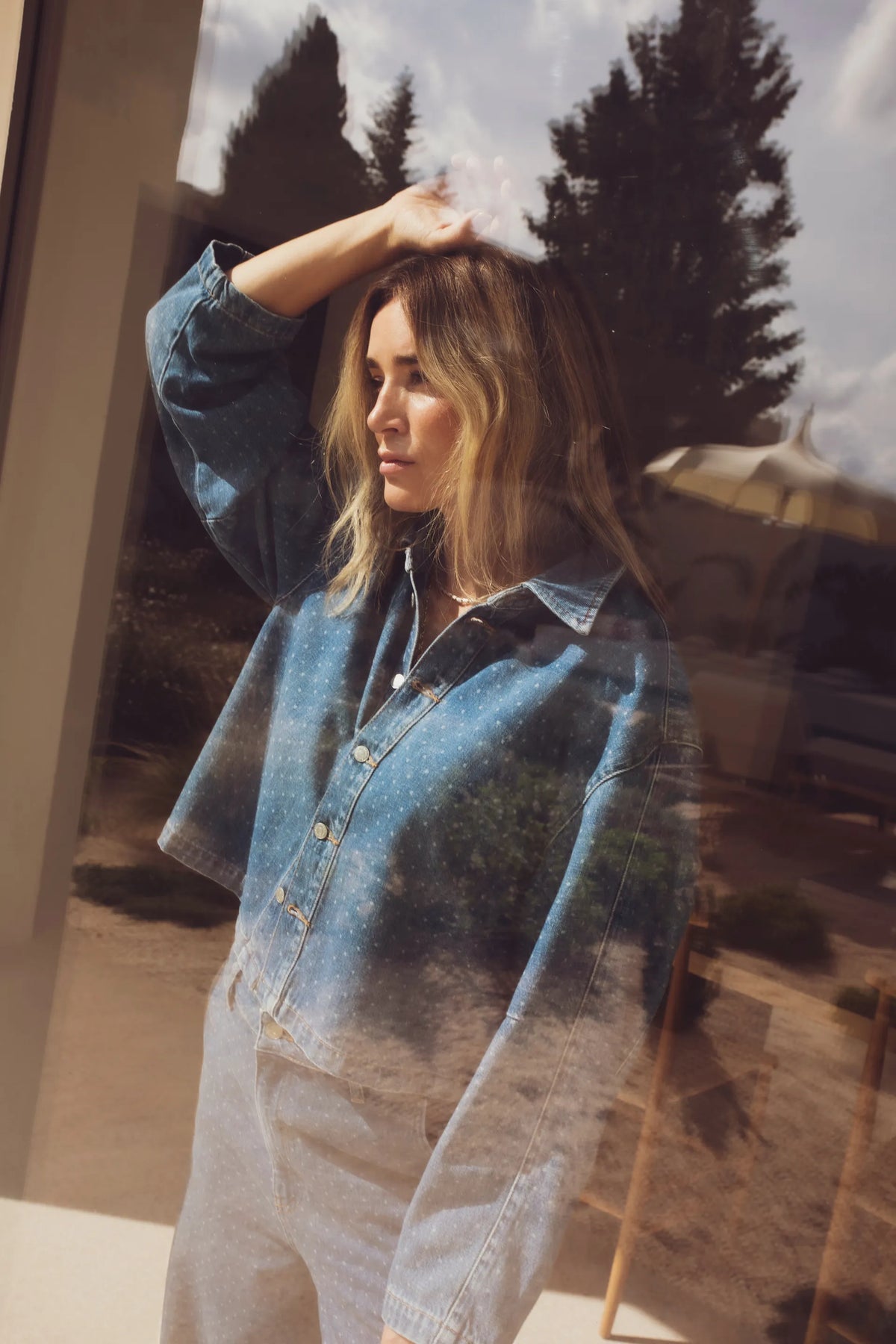 En ermeløs, prikkete bluse med en skreddersydd, nesten dressinspirert følelse. Definert gjennom midjen med en subtil utsving, avsluttet med en hakket krage og en knappelukking foran. Strukturert, men avslappet. Den typen plagg som holder formen og fremhever alt du bruker det med. Designet for å brukes alene, eller som en del av et matchende sett med de matchende buksene. Polert, men ikke dyrebart. Lett å style, vanskelig å ignorere. Sammensetning: 60 % CUPRO 40 % VISKOSE